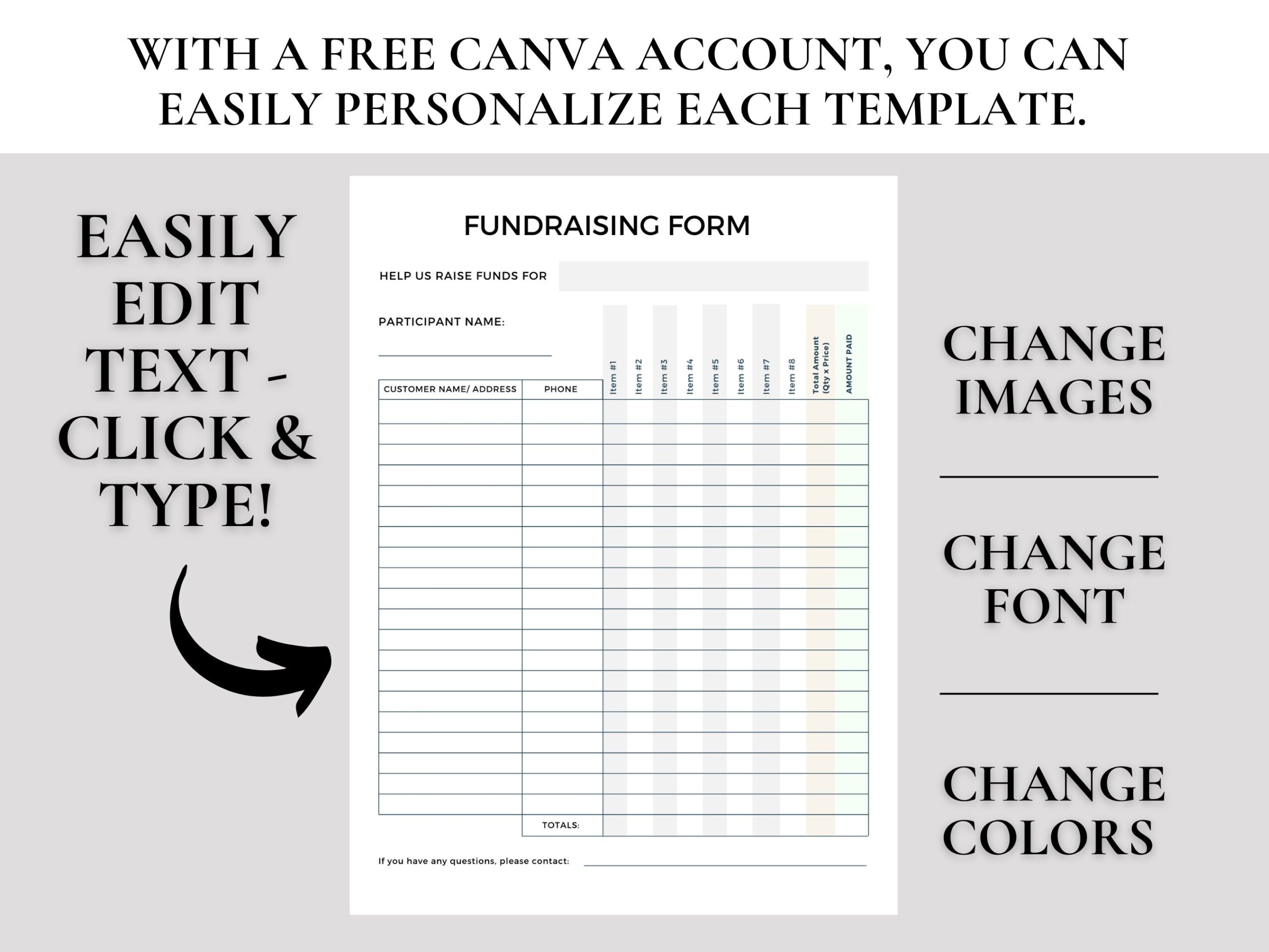 Fundraising Form Fundraiser Order Tracking Page Canva Template