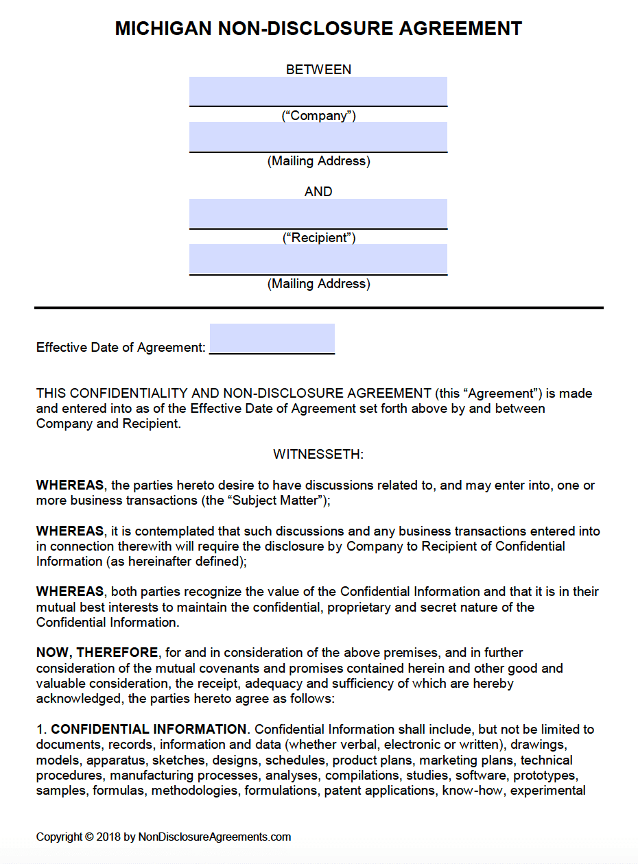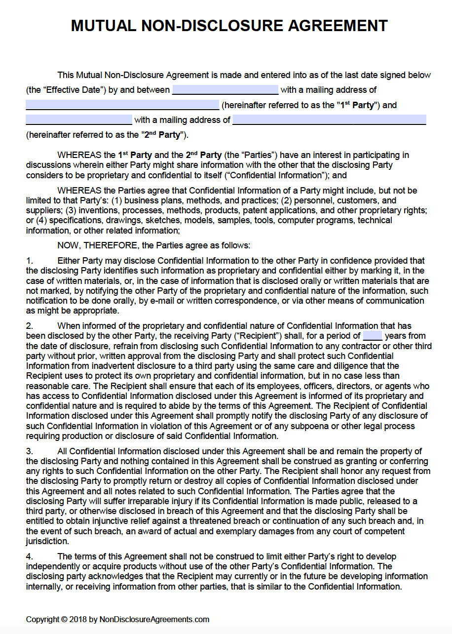 Free Mutual Non Disclosure Agreement NDA Template PDF Word