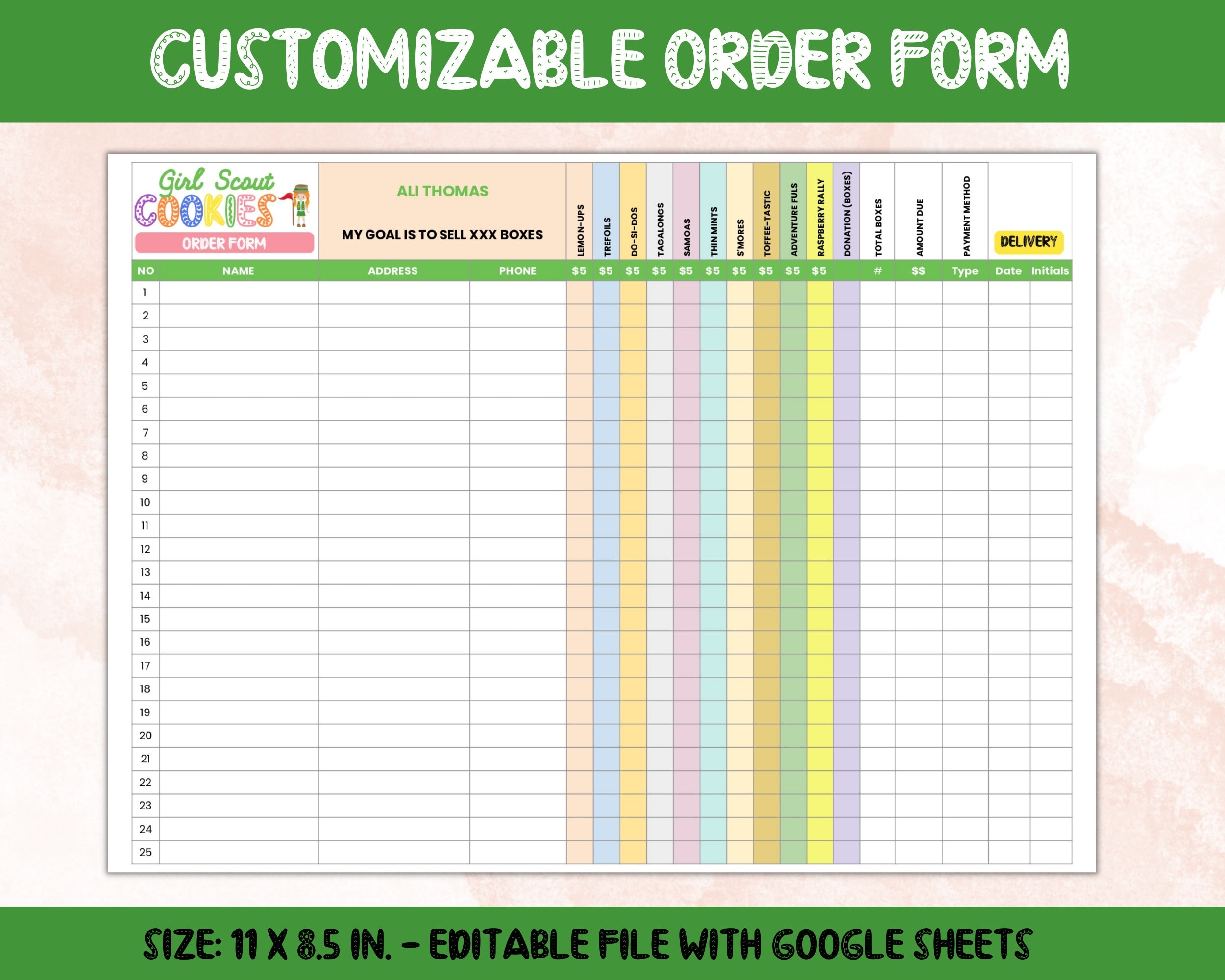 Girl Scout Cookie Order Form Template Editable With Google Sheets LBB Version Girl Scout Edit And Print 8 5X11 Instant Download Etsy Ireland