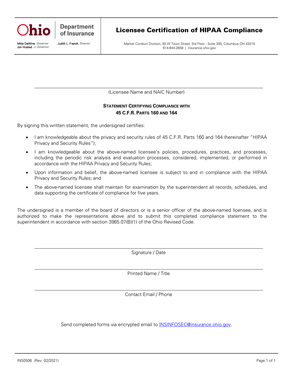 Hippa Free Printable Form For Ohio Form