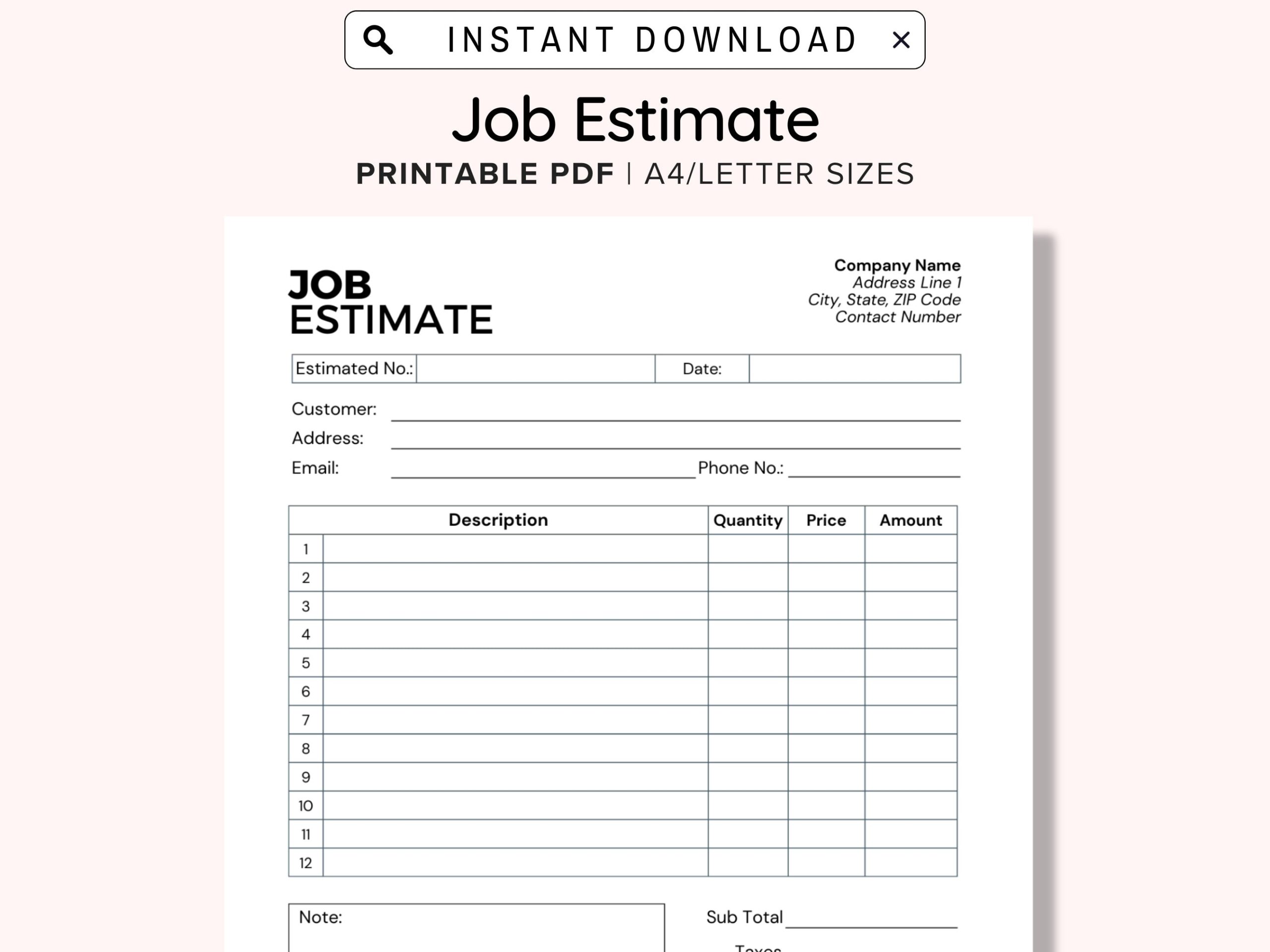 Job Estimate Template Printable Job Estimate Template PDF Editable WORD Construction Bid Painting Electrical Tile Home Remodeling Etsy