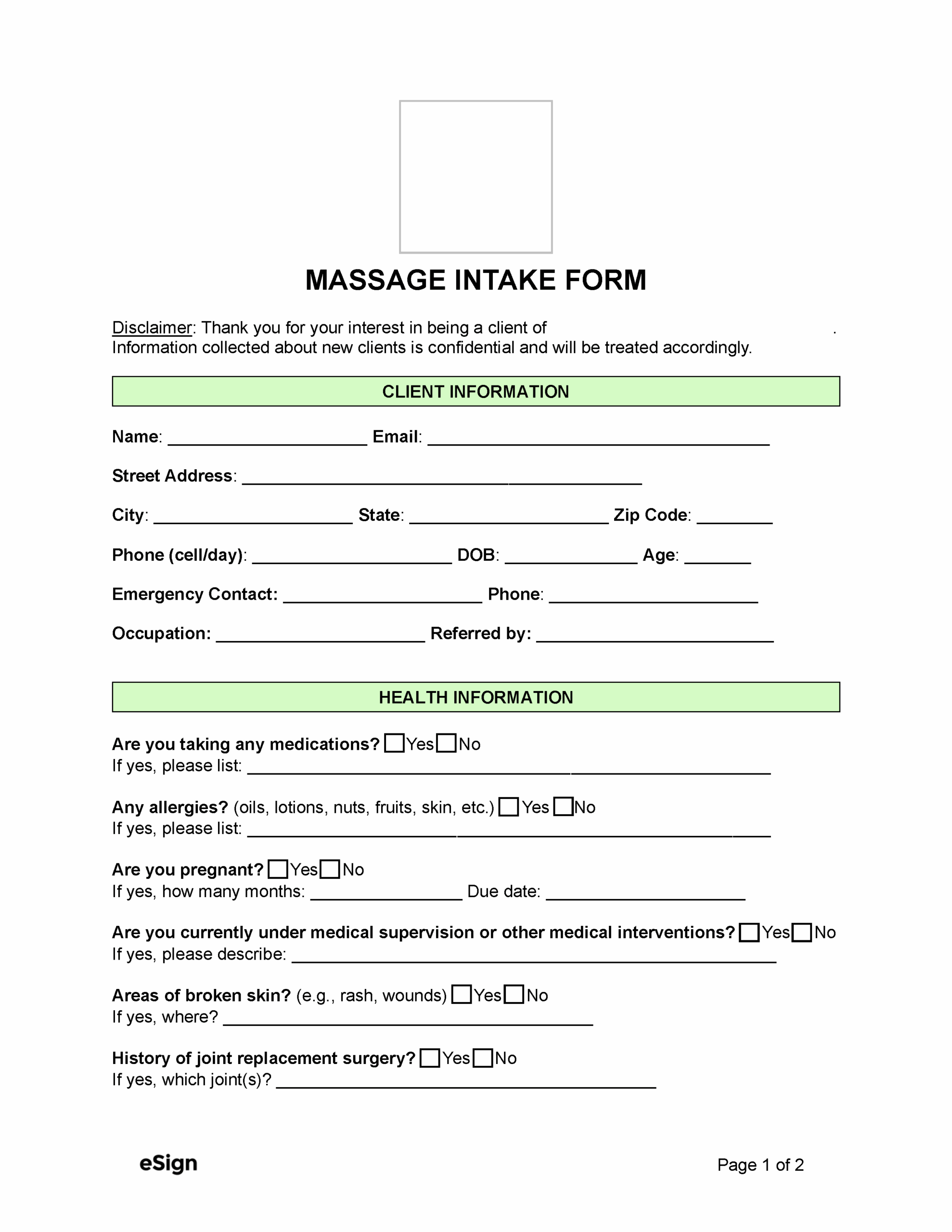 Free Massage Intake Form PDF Word