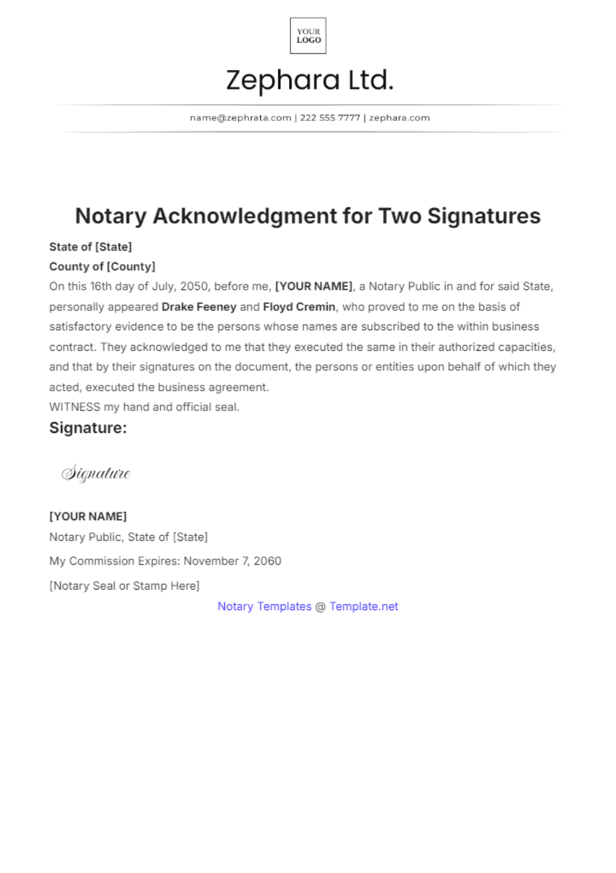 Free Notary Acknowledgment For Two Signatures Template To Edit Online