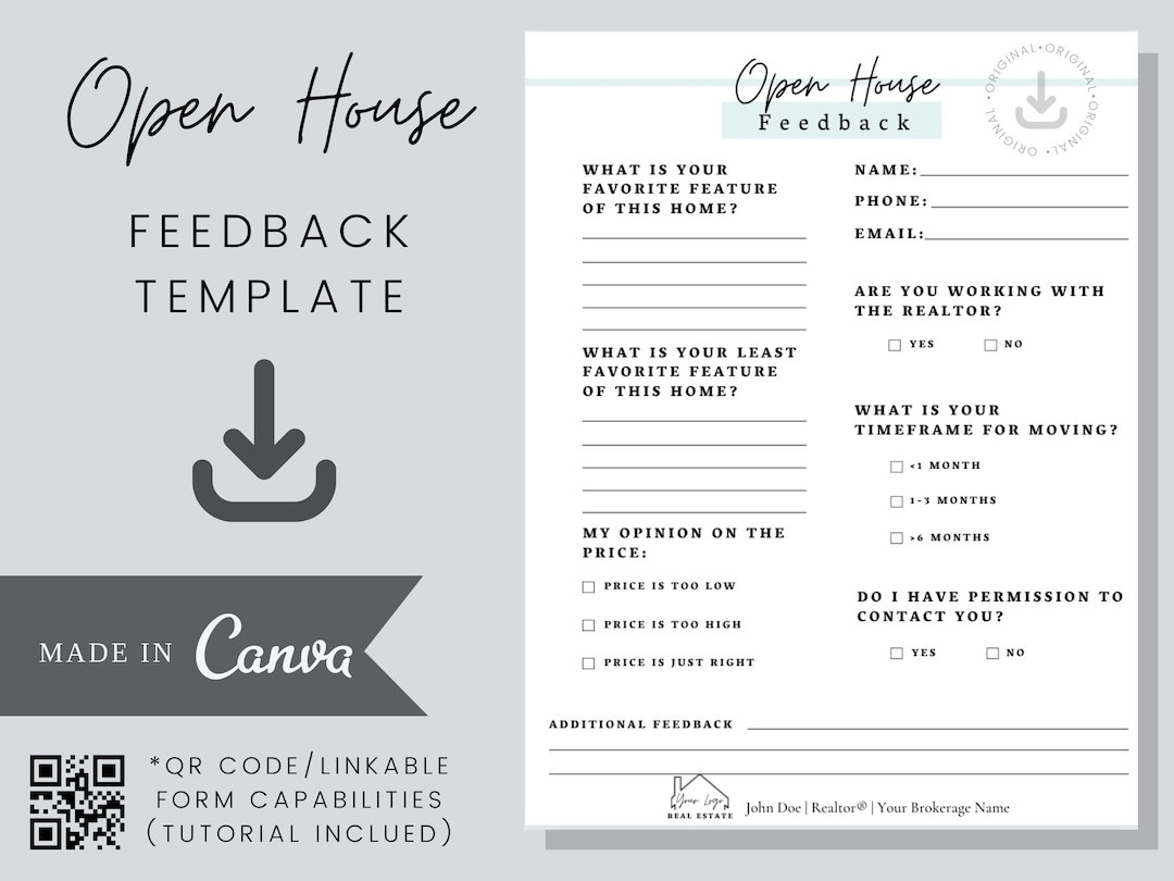 Open House Feedback Form Open House Signin Canva Template Realtor Download Template Etsy