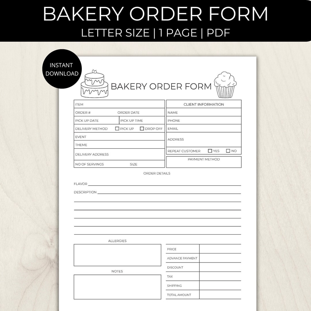 Bakery Order Form Fillable Cake Order Form Bakery Planner Printable Order Form For Small Business Template Bakery Order Form Receipt Etsy