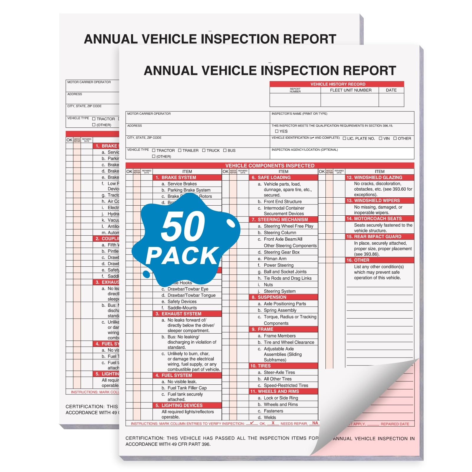 Amazon 50 Pack Annual Vehicle Inspection Report Form Detailed Driver s Vehicle Inspection Report 8 5