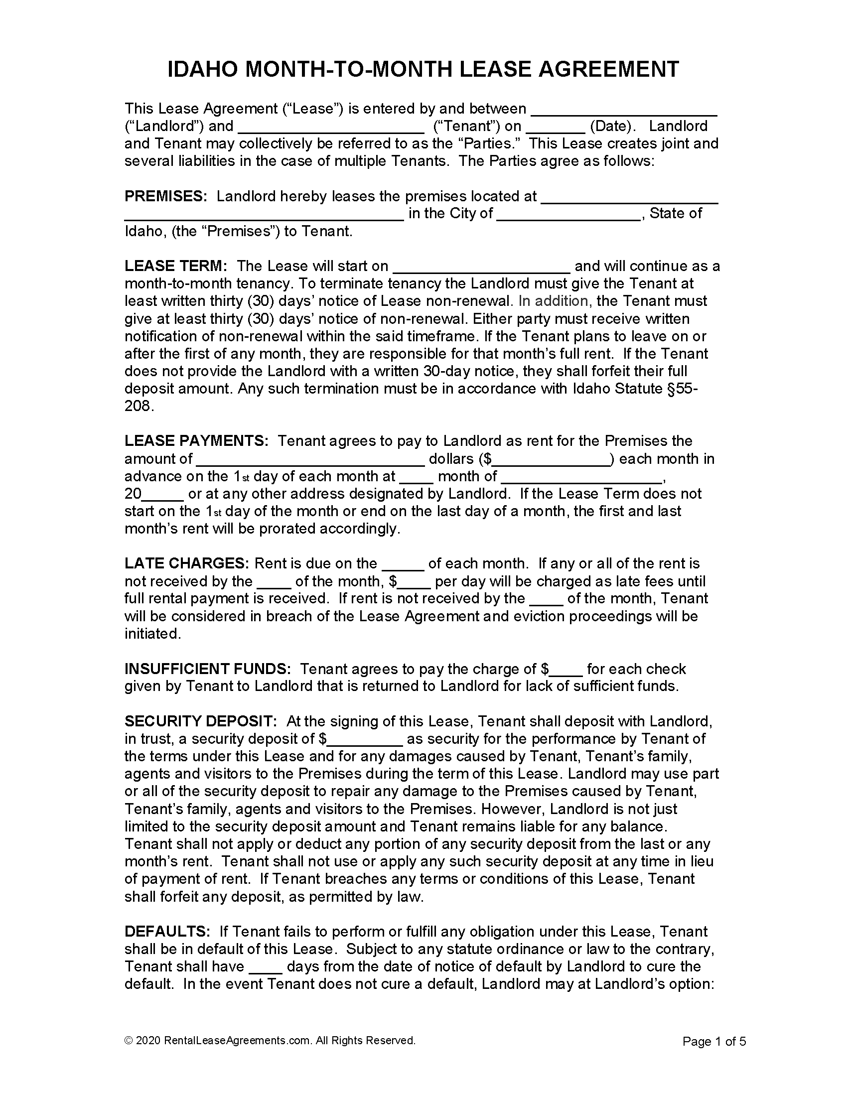 Free Idaho Month to Month Rental Agreement PDF MS Word