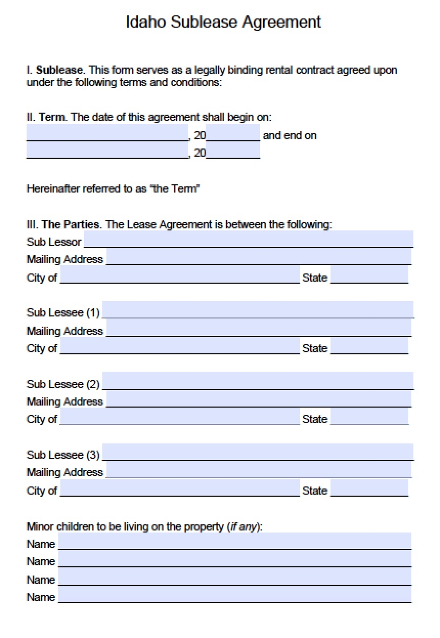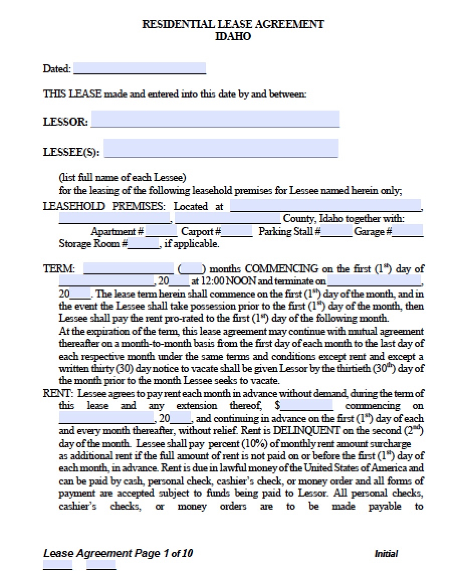 Free Idaho Rental Lease Agreement Templates PDF Word