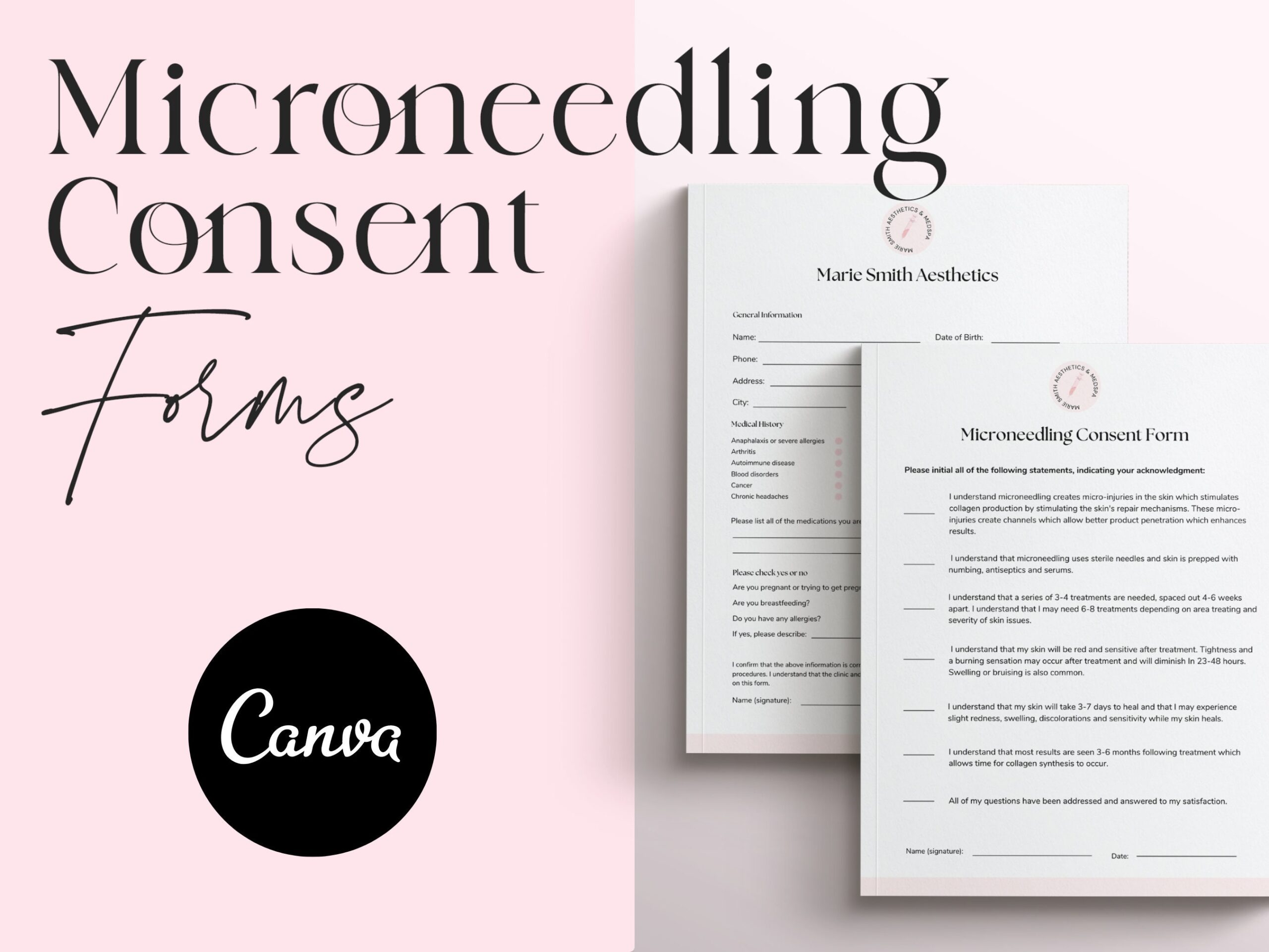 Microneedling Consent Forms Medspa Form Microneedling Form Micro Needling Consent Form Template Esthetician Form Micro Needle Etsy