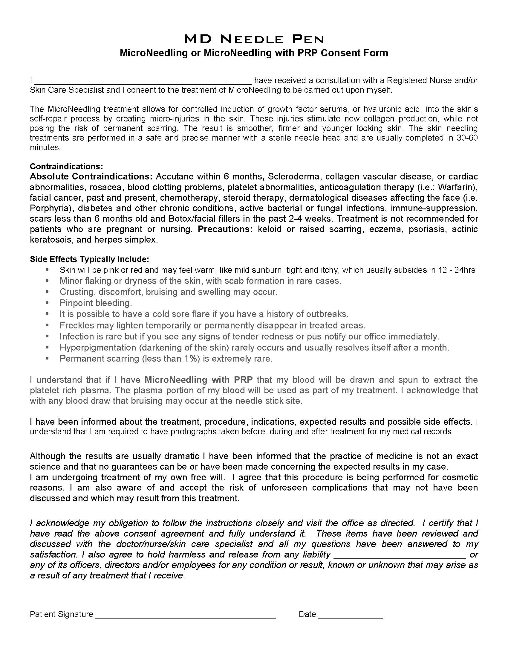 Printable Free Microneedling Consent Form