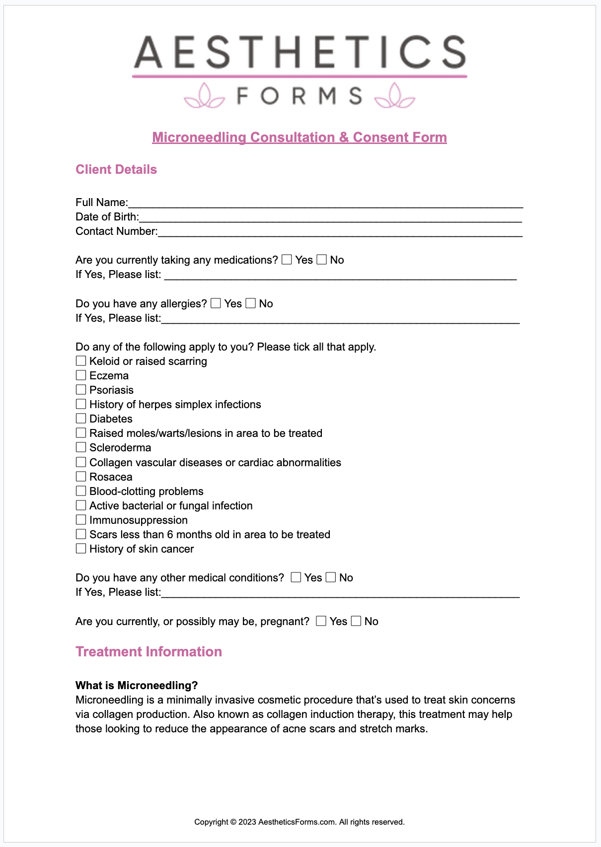Microneedling Consultation PDF Printable PDF Download